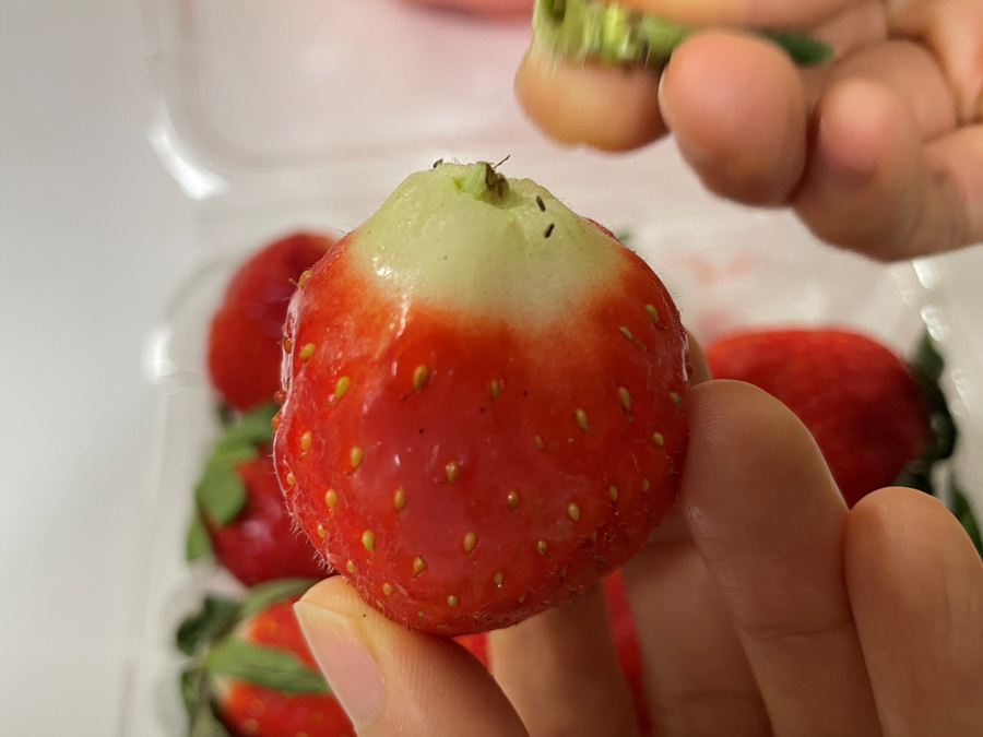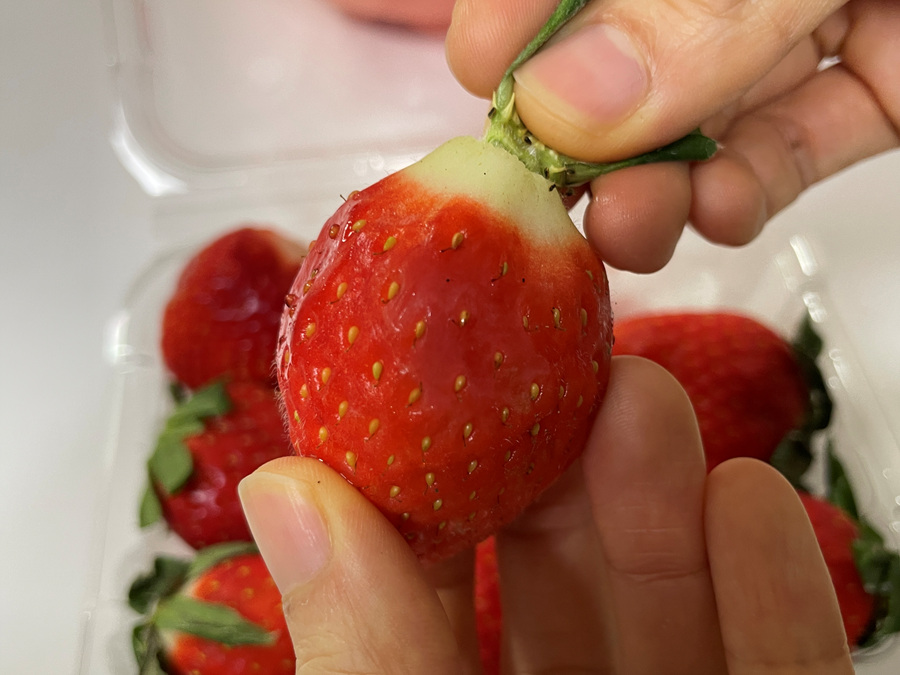 잔류 농약이 가장 많이 남아있는 곳이 바로 딸기 꼭지라고 해요.