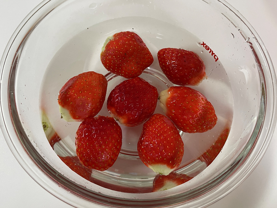 물에 너무 오래 담가두어도 딸기의 맛있는 향과 맛이 빠져나가니 유의해주세요.
