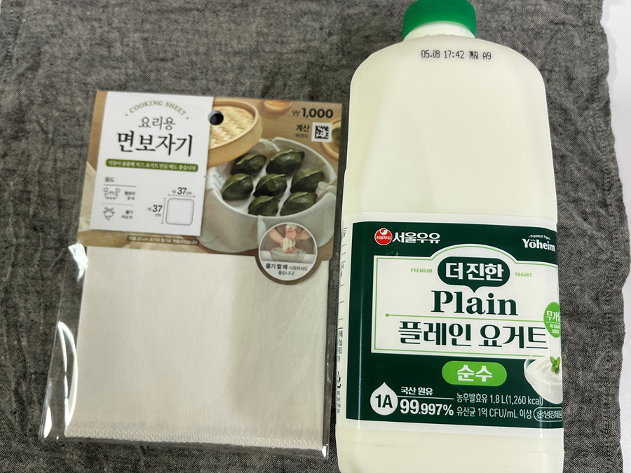 다이소 요리용 면보자기, 그리고 플레인 요거트가 필요합니다.